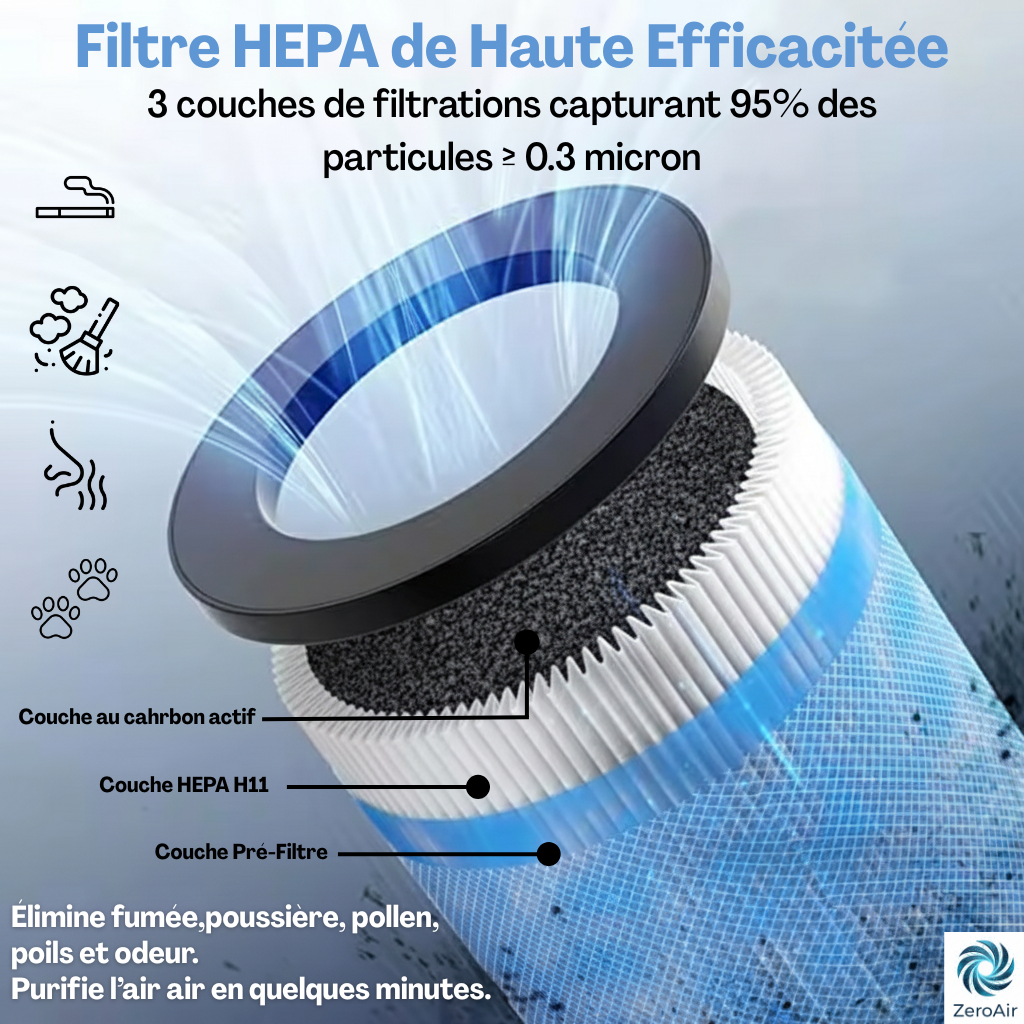Oui. Il capture jusqu’à 95 % des particules fines : poussières, pollen et fumée. Idéal pour une utilisation de proximité.